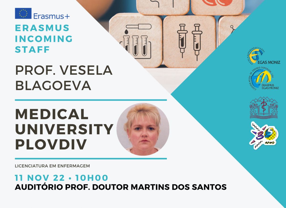 Após a aula, a Professora Blagoeva irá fazer uma breve apresentação da sua instituição, que é uma das parceiras Erasmus+ da Egas Moniz para as áreas de Enfermagem e Fisioterapia.
